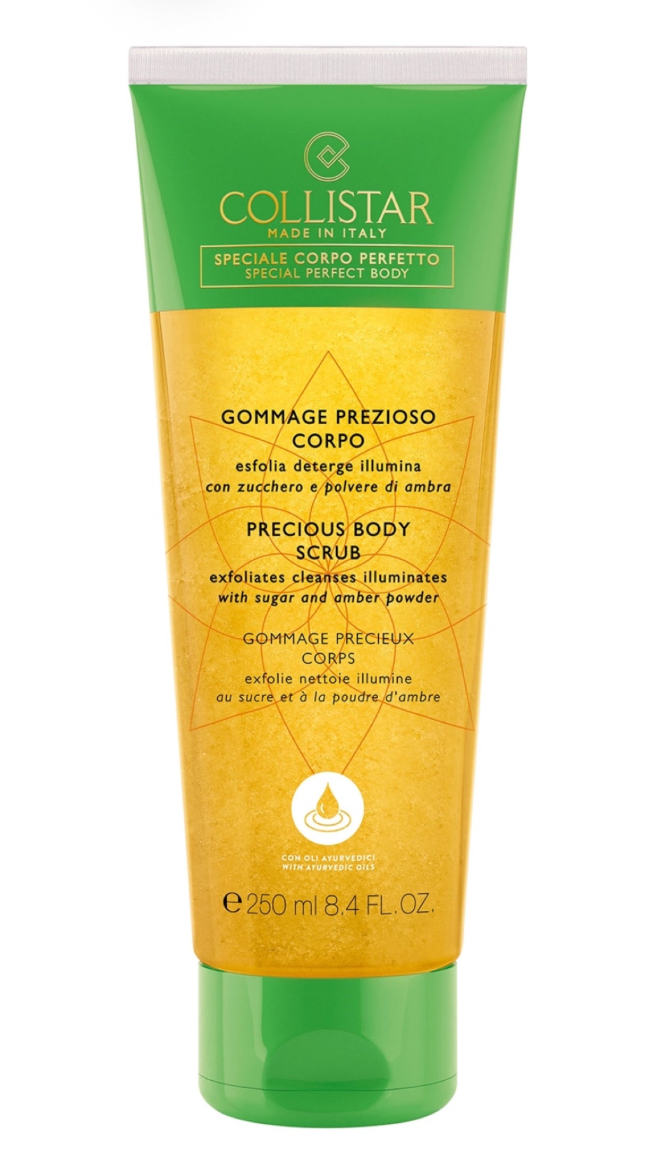 Zucchero e polvere di ambra esfoliano la pelle, la papaya rende l’epidermide più luminosa.